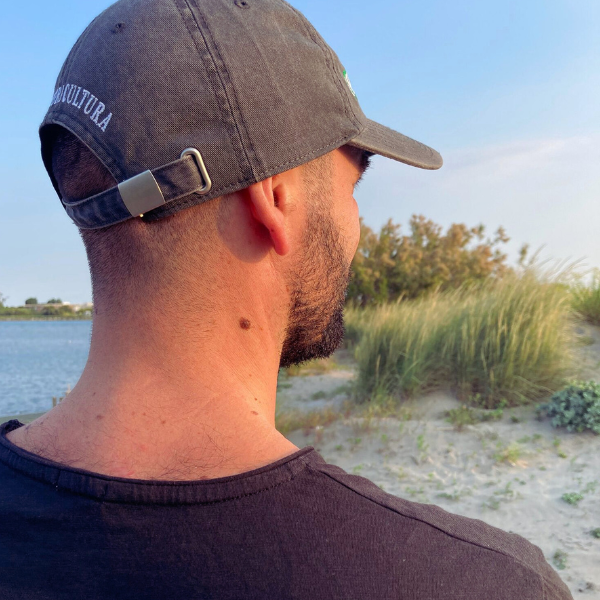 Cappello modello baseball denim, trattamento washed, morbido e adattabile, scritte ricamate
