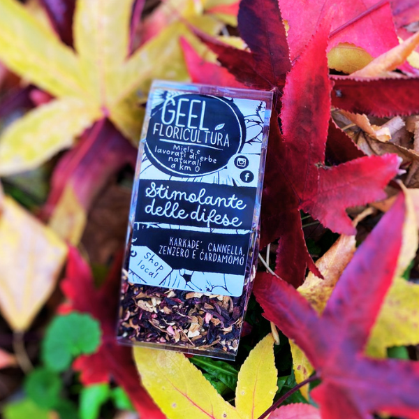 Esta mezcla se caracteriza por las notas fuertes dadas por la presencia de la raíz de jengibre. Nuestro té de hierbas Estimulante de defensa Contiene semillas de cardamomo conocidas por sus propiedades antioxidantes y antiinflamatorias. las flores de karkadè le dan un color rubí característico a la bebida; también son ricos en flavonoides y antocianinas, además de ayudar en el proceso de digestión.