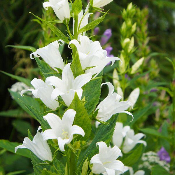 Plante herbacée vivace à croissance vigoureuse, cette Campanule fleurit entre les mois de juin et juillet, dégageant des nuages blancs.