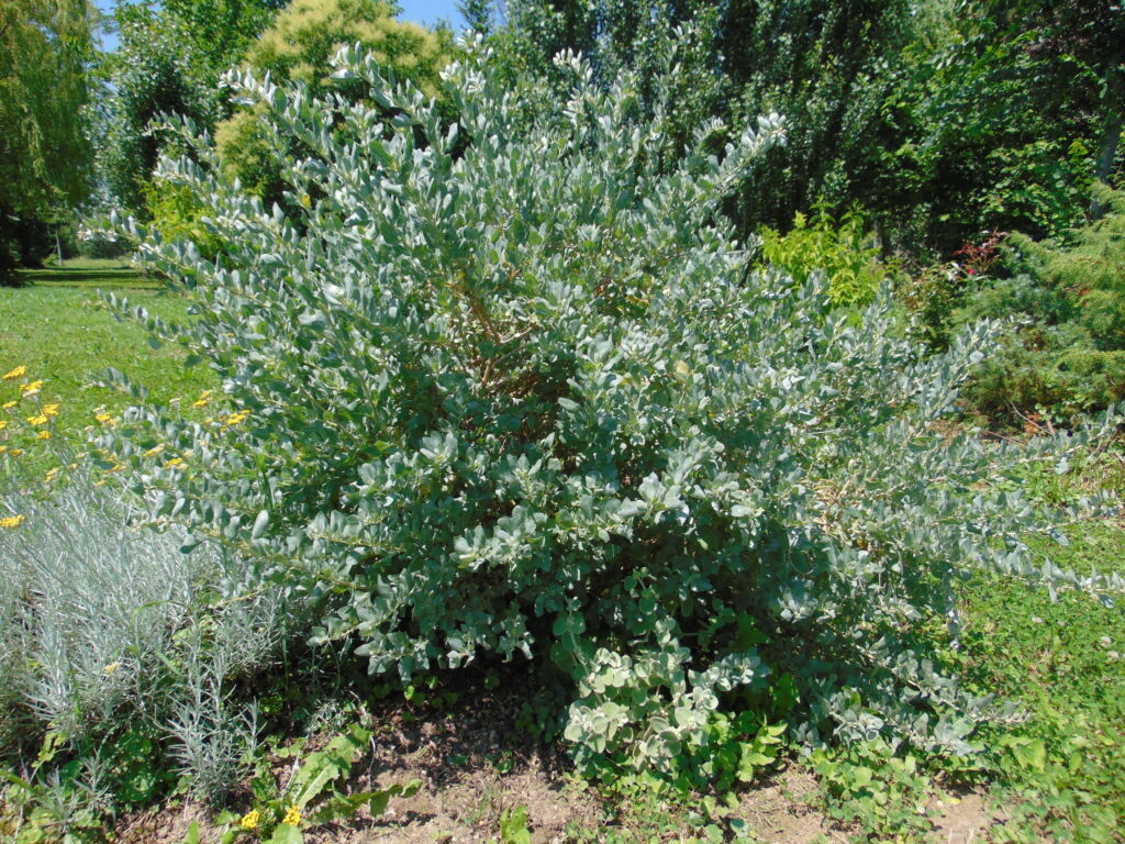 L'herbe à sel se caractérise par son feuillage glabre gris argenté et son port érigé, qui supporte bien les tailles importantes.