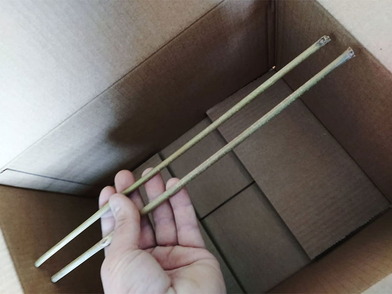 Successivamente, Il sacchetto viene forato per l’inserimento di un sostegno in canna di bambù.
