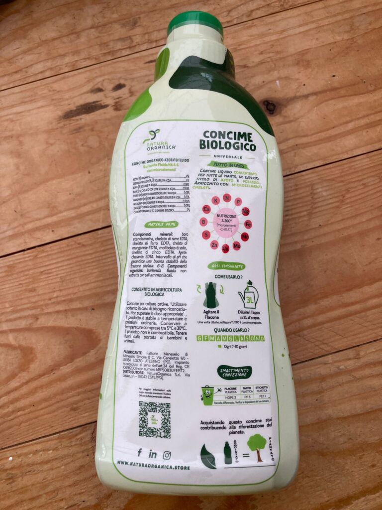 Concime liquido concentrato consentito in agricoltura biologica, indicato per tutte le colture e ad elevato titolo di azoto e potassio, arricchito con microelementi chelati.
