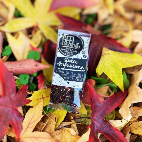 La tisana Dolce infusione si caratterizza per il sapore dolce e fruttato dato dalla ciliegia e dai frutti di bosco. I fiori di karkadè conferiscono un caratteristico colore rubino alla bevanda; sono inoltre ricchi di flavonoidi e antociani, oltre a favorire il processo di digestione.
