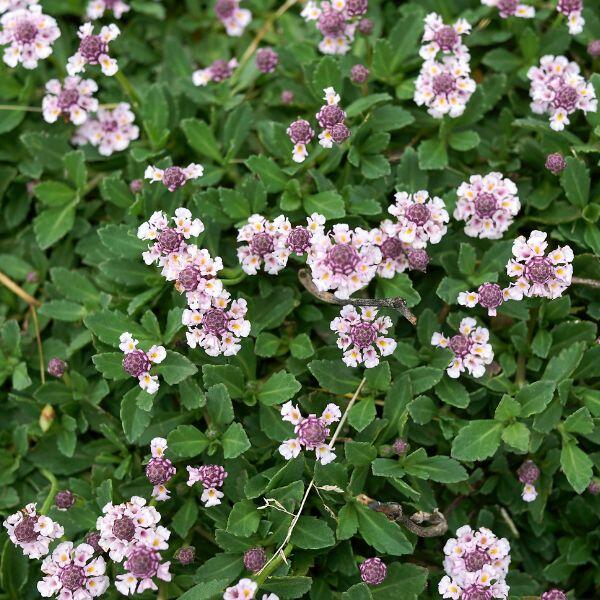 Lippia nodiflora è una specie perenne e resistente al freddo, perfetta come coprisuolo.