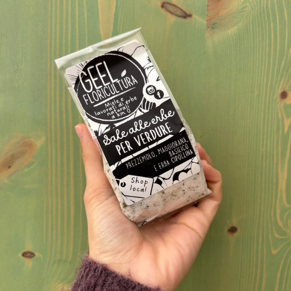 Ingredienti: sale fino integrale, basilico, maggiorana, erba cipollina, prezzemolo.