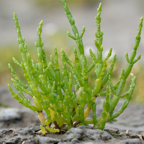 Salicornia è una specie alofita, capace di insediarsi con facilità su terreni salini e alcalini. I rami salati sono ricchi di sali minerali e vengono consumati, ancora verdi, sottaceto o come gli asparagi: bolliti o serviti con il burro e l’aceto.