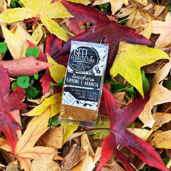 Ingredienti: zucchero grezzo di pura canna, scorze di limone e arancia.